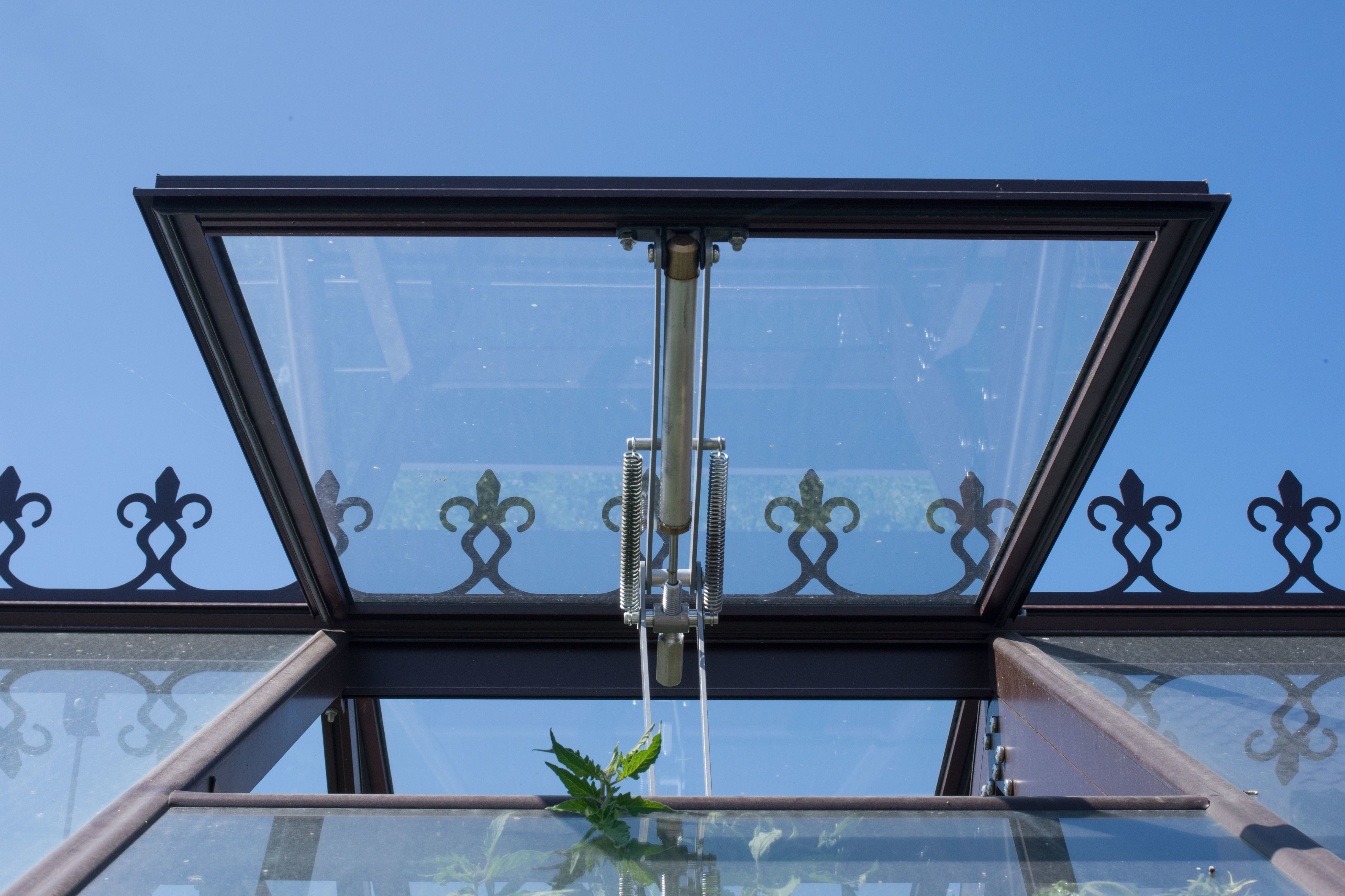 Длина теплицы - 7,8 м., в комплекте: дверь-купе, 2 торцевые форточки и 8 в скате крыши.